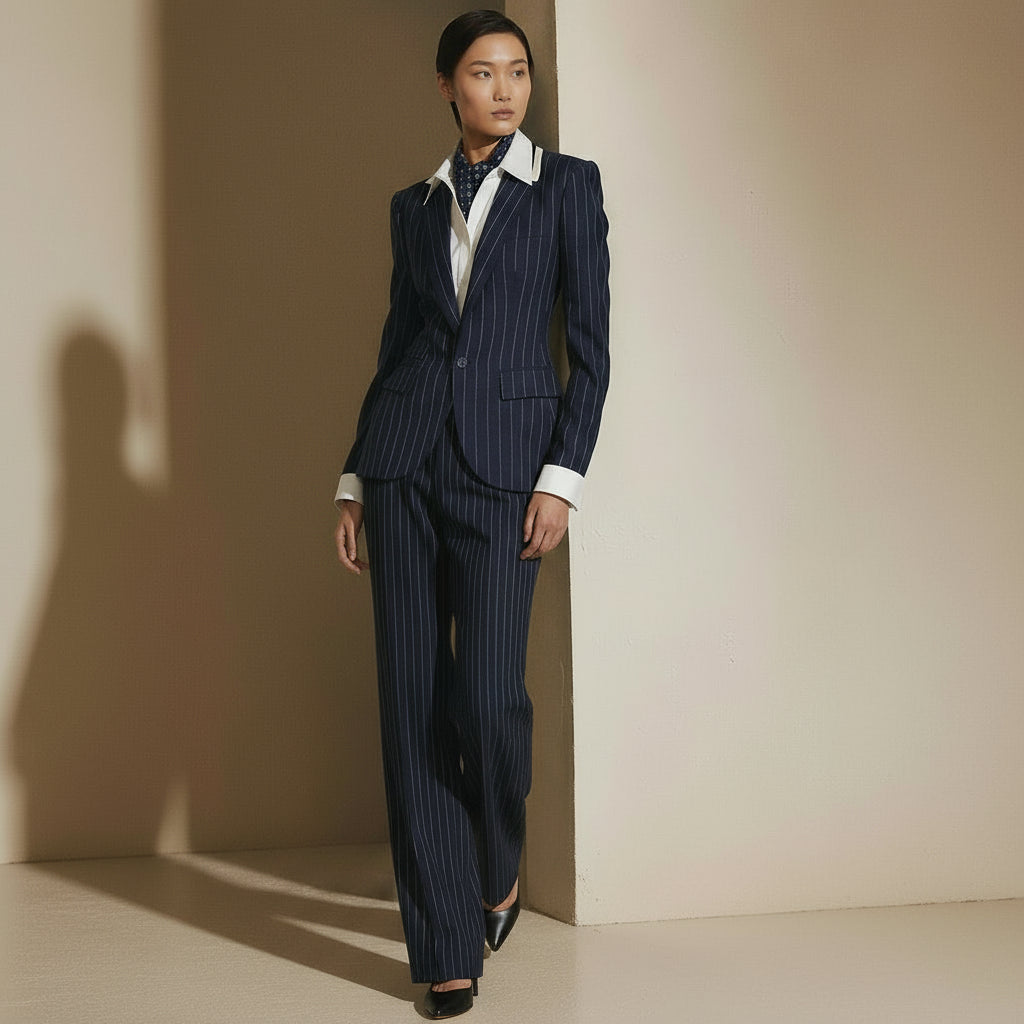 Pinstripe classic suits embody timeless sophistication with sharp, vertical lines that elongate the frame.