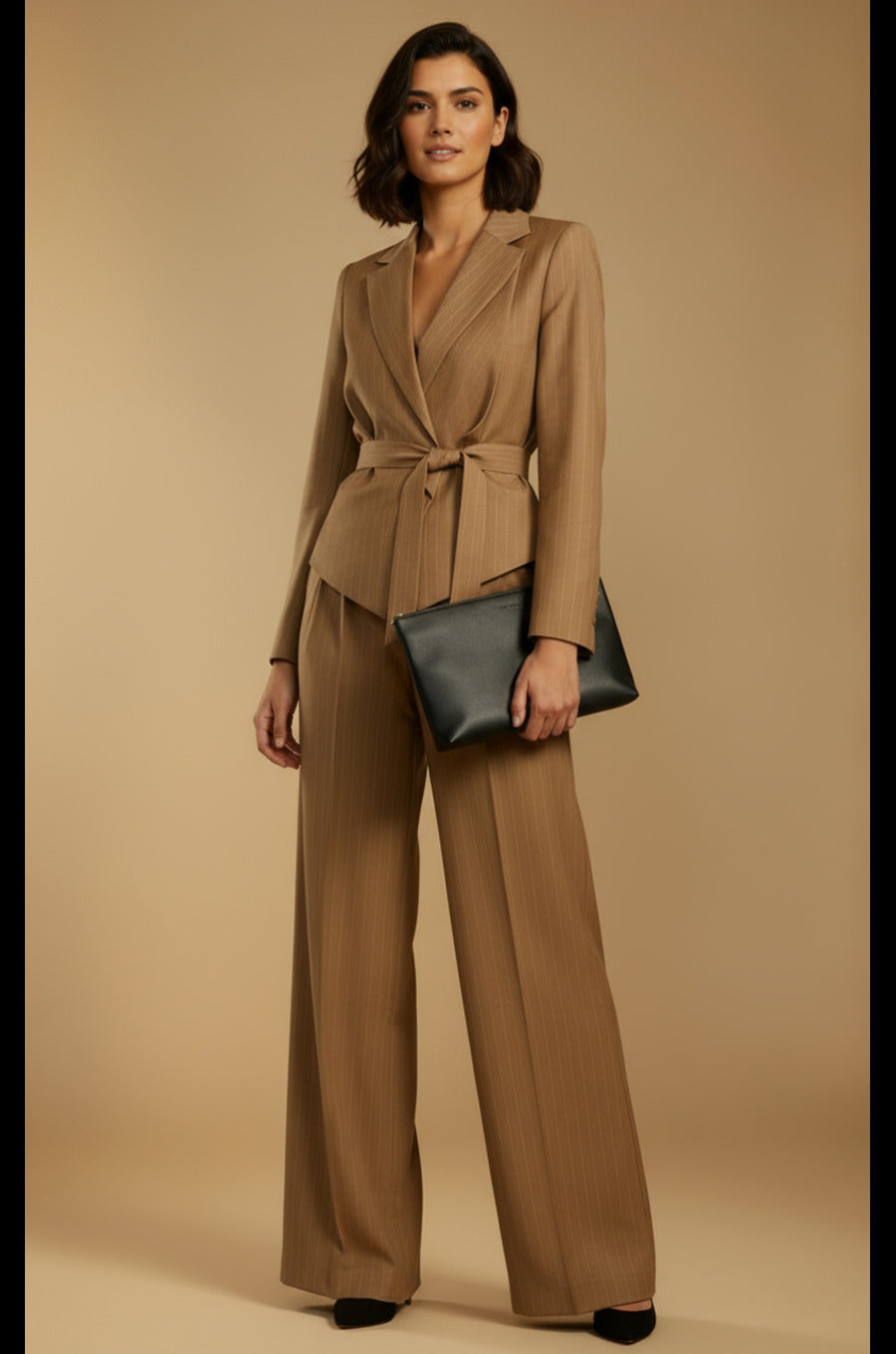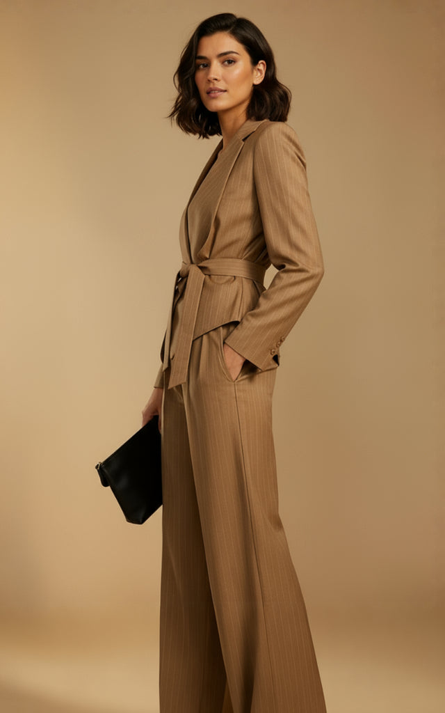 Pinstripe classic suits embody timeless sophistication with sharp, vertical lines that elongate the frame.