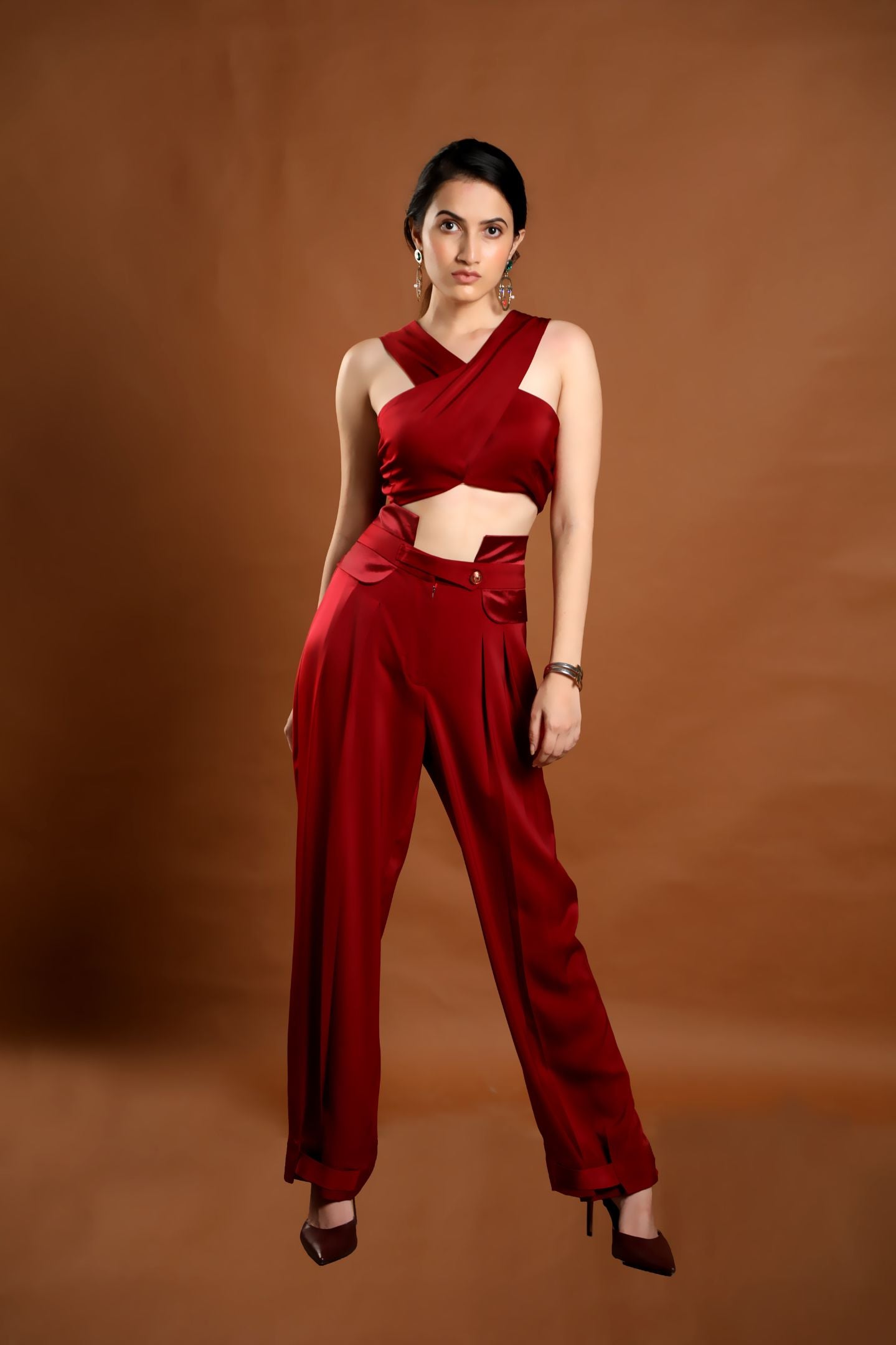 Our best seller high waisted pants that transforms from a day to an evening look when styled with a white shirt during the day or a crop top in the evening.