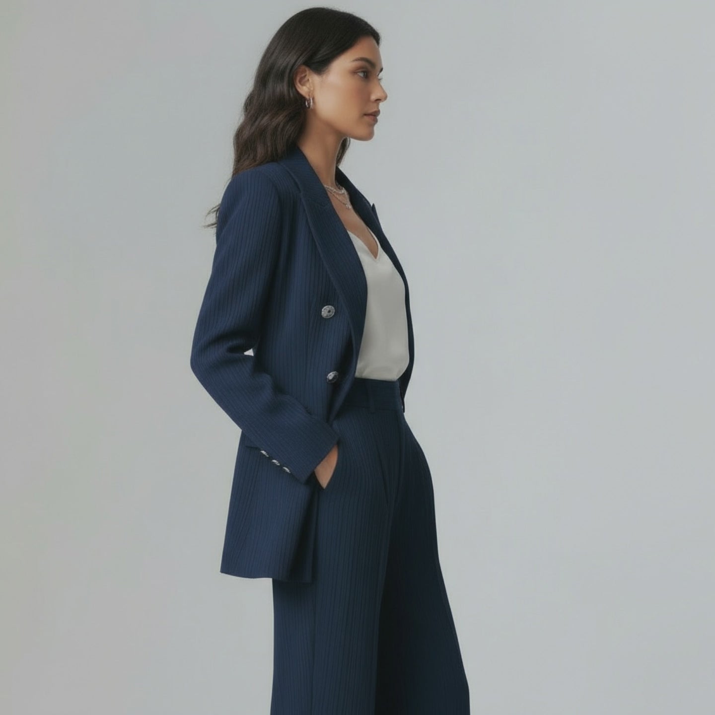 Nomara Pantsuit  flatters with effortless precision. Blending power with poise for the modern women  presence. A wardrobe icon that speaks style with the quiet sophistication blending comfort and style.