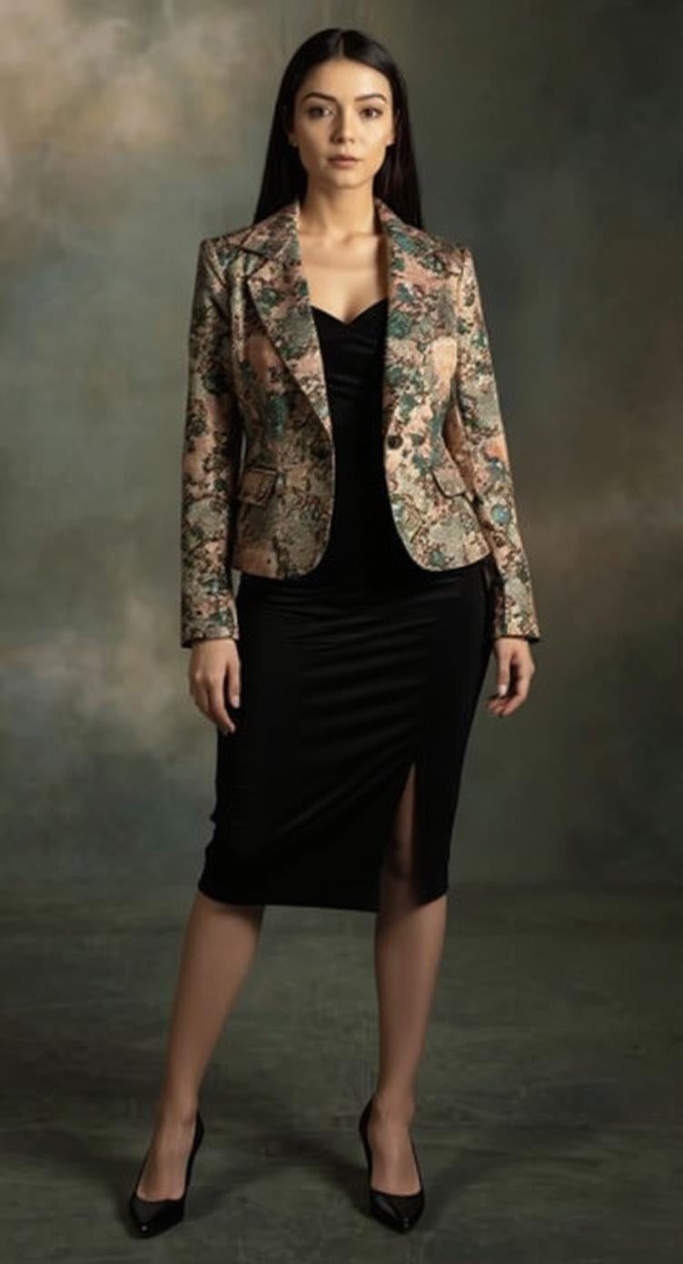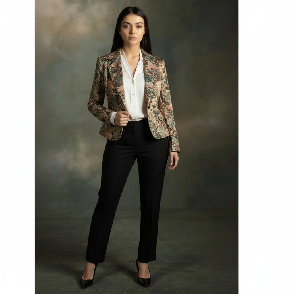 Elevate your wardrobe with this brocade open jacket, expertly crafted to combine traditional elegance with modern style. Its rich textured fabric offers a luxurious feel, while the open front design ensures versatile layering options. Perfect for formal occasions or adding a refined touch to everyday outfits, this jacket delivers both comfort and sophistication.
